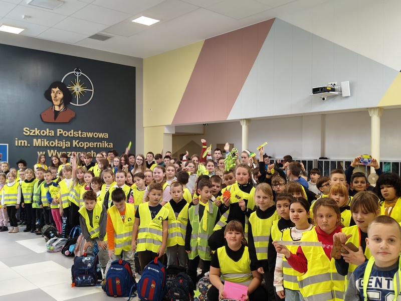 Uczniowie Szkoły Podstawowej im. Mikołaja Kopernika w Wyszynach po raz kolejny udowodnili, że bezpieczeństwo jest dla nich niezwykle ważne. W ramach szkolnej akcji „Jestem widoczny, noszę odblaski” przypomnieli sobie, jak istotną rolę w drodze do szkoły odgrywa właściwa widoczność na drodze, zwłaszcza jesienią i zimą. Wszyscy uczniowie aktywnie włączyli się w inicjatywę, zakładając kamizelki odblaskowe oraz przypinając odblaski do plecaków.