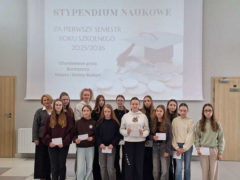 Dnia 28 stycznia uczniowie naszej szkoły zostali uhonorowani stypendiami naukowymi ufundowanymi przez Gminę Budzyń za osiągnięcie wysokich wyników w nauce. Wyróżnienie to jest efektem ich ciężkiej, systematycznej pracy, zaangażowania oraz pasji w zdobywaniu wiedzy. O zabezpieczeniu środków na stypendia naukowe i sportowe dla uczniów naszej szkoły każdego roku pamięta Burmistrz Miasta i Gminy Budzyń, Pan Marcin Sokołowski. Serdecznie gratulujemy wszystkim nagrodzonym i życzymy dalszych sukcesów edukacyjnych oraz spełnienia marzeń.