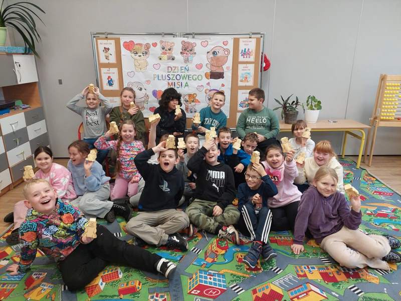 Z okazji Dnia Pluszowego Misia uczniowie klasy 3 uczestniczyli w wyjątkowych, kreatywnych zajęciach poświęconych jednej z najbardziej lubianych dziecięcych zabawek. Lekcja rozpoczęła się od poznania historii powstania pluszowego misia – dzieci dowiedziały się, skąd wzięła się jego nazwa i dlaczego maskotka stała się symbolem przyjaźni oraz dziecięcej radości.