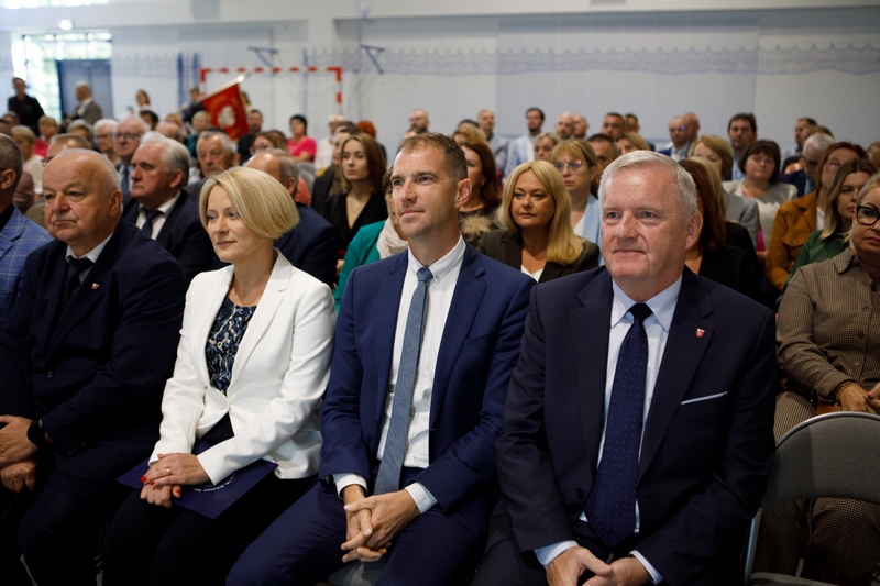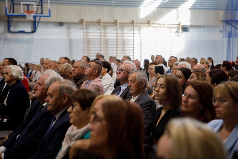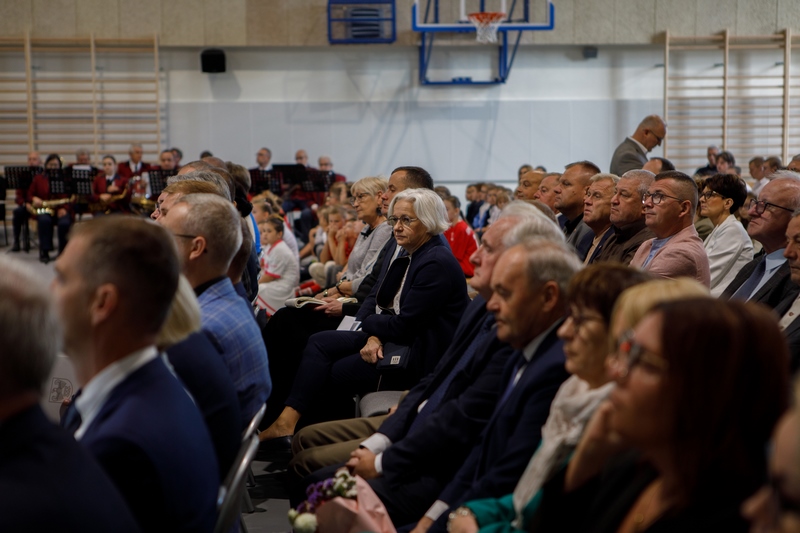 Uroczystość, której gospodarzami byli: Burmistrz Miasta i Gminy Budzyń, Pan Marcin Sokołowski, oraz Dyrektor szkoły, Pani Donata Kędzierska, zgromadziła wielu znamienitych gości. W imieniu gospodarzy powitaliśmy m.in.: członka Zarządu Województwa Wielkopolskiego, Pana Jacka Bogusławskiego, Dyrektora Departamentu Sportu i Turystyki Urzędu Marszałkowskiego w Poznaniu, Pana Adama Wysockiego, Dyrektora Delegatury Kuratorium Oświaty w Pile, Pana Jacka Skowrońskiego, Starostę Powiatu Chodzieskiego, Pana Adriana Urbańskiego, a także radnych, sołtysów, dyrektorów zaprzyjaźnionych szkół, przedszkoli i Klubu Malucha, przedstawicieli służb, klubów sportowych oraz wykonawcy inwestycji – Firmy Jack-BUD na czele z Dyrektorem, Panem Tomaszem Sarbakiem.