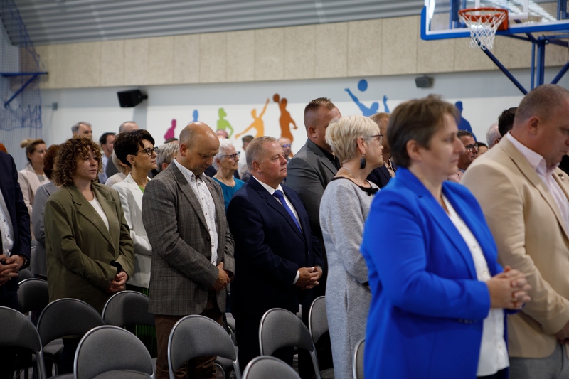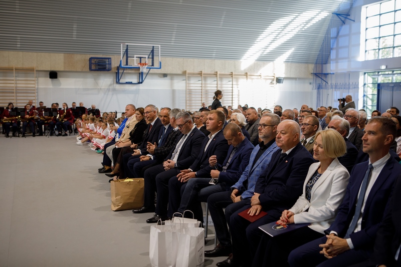 Burmistrz Miasta i Gminy Budzyń, Pan Marcin Sokołowski, wyraził w swoim wystąpieniu radość z powodu wybudowania na terenie gminy tak wspaniałego obiektu, zastępującego poprzednią, prowizoryczną halę sportową, użytkowaną już ponad 20 lat. Dyrektor Szkoły, Pani Donata Kędzierska podkreśliła, że boisko to spełnienie marzeń, które stało się rzeczywistością dzięki współpracy, determinacji i wsparciu wielu osób i podkreśliła, że to obiekt nie tylko szkolny, ale służący całej lokalnej społeczności. Przewodnicząca Rady Rodziców, Pani Agnieszka Szostak w swoim wystąpieniu wyraziła nadzieję, że kolejne pokolenia sportowców, absolwentów naszej szkoły, będą odnosić sukcesy nie tylko w tym obiekcie, ale także na arenach międzynarodowych. Po uroczystym przecięciu wstęgi proboszcz Jacek Wachowski dokonał poświęcenia obiektu, życząc, aby służył bezpiecznej i radosnej rywalizacji sportowej oraz integracji lokalnej społeczności. Słowa uznania dla władz gminy i dyrektora szkoły, gratulacje i życzenia wygłosili jeszcze: Członek Zarządu Województwa Wielkopolskiego, Pan Jacek Bogusławski, Starosta, Pan Adrian Urbański oraz Dyrektor Delegatury Wielkopolskiego Kuratorium Oświaty, Pan Jacek Skowroński. Cała uroczystość spotkała się z ogromnym uznaniem i podziwem za doskonałą organizację. Dzięki zaangażowaniu wielu osób, wszystko przebiegło sprawnie i w podniosłej atmosferze.