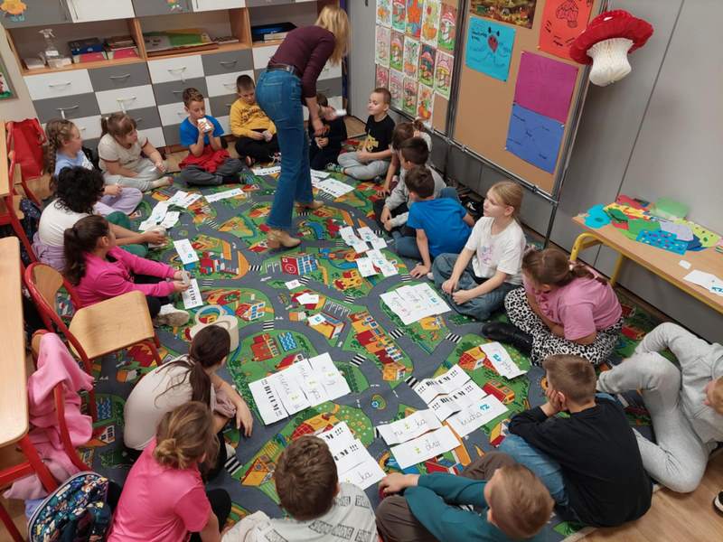 Podczas zajęć z edukacji wczesnoszkolnej uczniowie klasy 3 wzięli udział w pełnej emocji grze dydaktycznej „Ortograficzne buuum!”. Celem zabawy było utrwalenie poznanych zasad ortograficznych oraz doskonalenie umiejętności poprawnego pisania wyrazów z „ż” i „rz”. Gra dostarczyła dzieciom wielu atrakcji i mnóstwo radości.