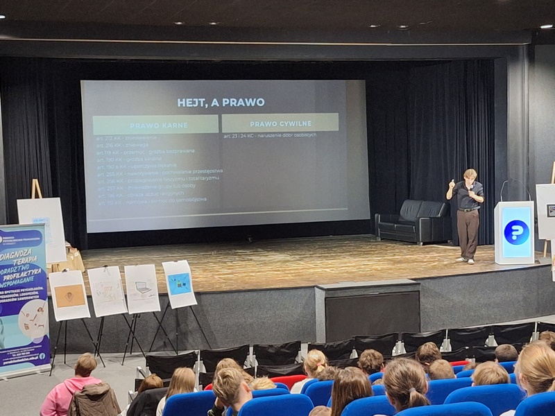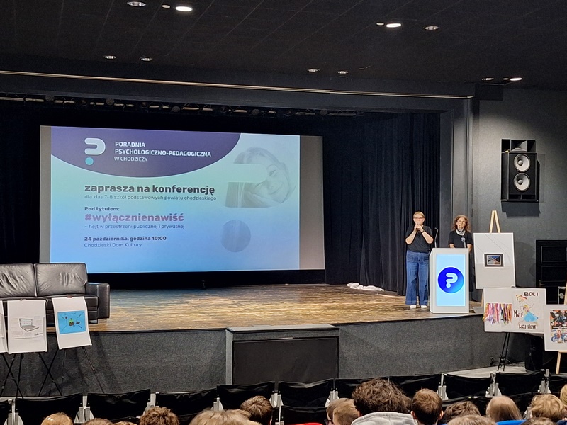 Uczniowie klas siódmych i ósmych naszej szkoły wzięli udział w wyjątkowej konferencji zorganizowanej przez Poradnię Psychologiczno-Pedagogiczną w Chodzieży pod hasłem #wyłącznienawiść – hejt w przestrzeni publicznej i prywatnej. Spotkanie miało na celu uświadomienie młodzieży, jak poważnym problemem jest hejt oraz jak ważne są wzajemny szacunek, empatia i odpowiedzialność w sieci oraz w codziennych relacjach.