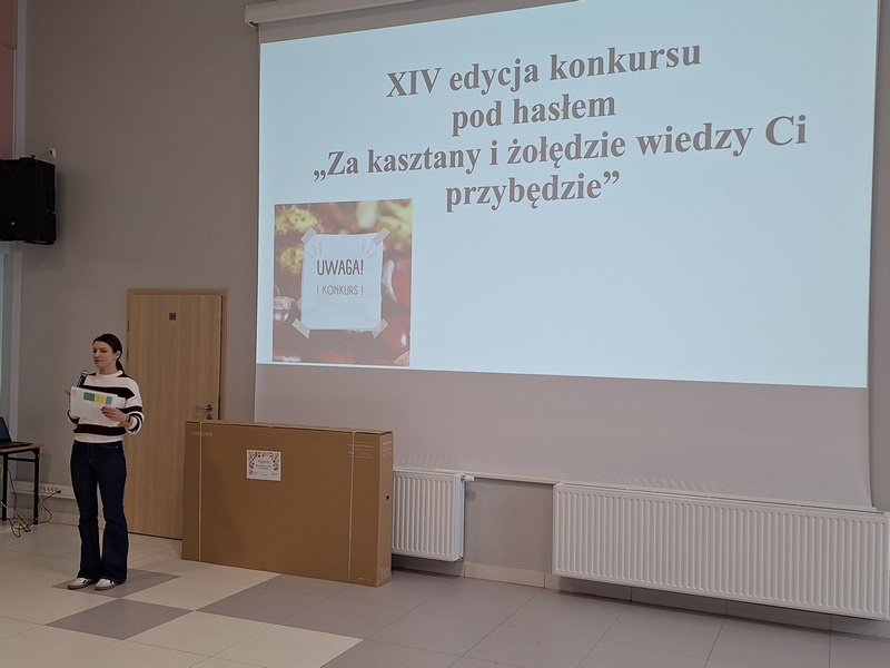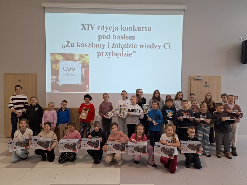 Dzięki zaangażowaniu uczniów w międzyszkolnej rywalizacji szkoła zajęła II miejsce w ranking szkół biorących udział w konkursie ,,Za kasztany i żołędzie, wiedzy Ci przybędzie’’ tym samym uczniowie wygrali dla szkoły tablicę multimedialną. Uczniowie wykazali się dużym zaangażowaniem w zbiórkę nasion, a w szczególności klasa I.