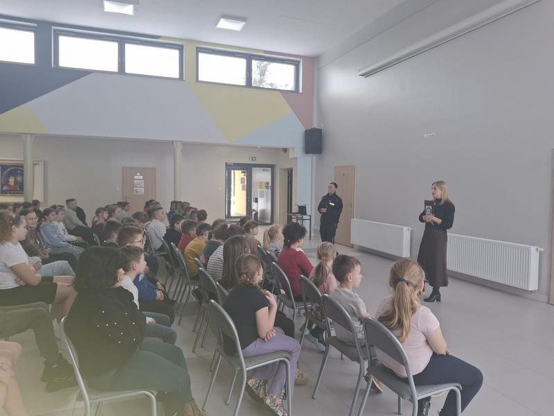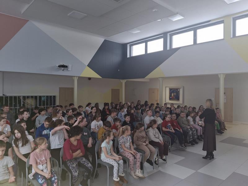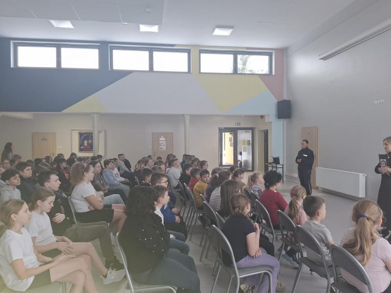 Dnia 4 lutego w naszej szkole odbyło się spotkanie profilaktyczne dotyczące bezpiecznych ferii, skierowane do uczniów klas I–VIII. W pierwszej części uczniowie uczestniczyli w zajęciach prowadzonych przez przedstawicielkę Sanepidu w Chodzieży, która przypomniała zasady dbania o zdrowie i bezpieczeństwo podczas zimowego wypoczynku. Następnie odbyło się spotkanie z przedstawicielką Komendy Powiatowej Policji w Chodzieży, która omówiła najważniejsze zasady bezpieczeństwa w czasie ferii – zarówno w domu, jak i poza nim.