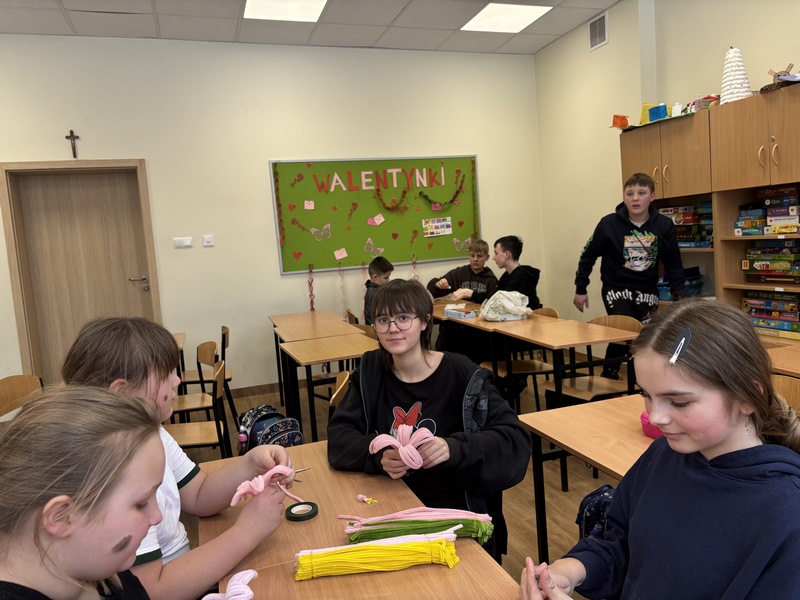 W naszej szkole dbamy o to, aby każde dziecko mogło rozwijać swoje pasje i talenty nie tylko podczas lekcji, ale również w czasie pobytu w świetlicy szkolnej. Udowadniamy, że zajęcia świetlicowe mogą być równie inspirujące i kreatywne jak te w klasie! 10 lutego w świetlicy szkolnej odbyły się wyjątkowe zajęcia plastyczne, które poprowadziła uczennica Lena Janicka. Podczas warsztatów dzieci wykonywały kolorowe kwiaty z patyczków kreatywnych.