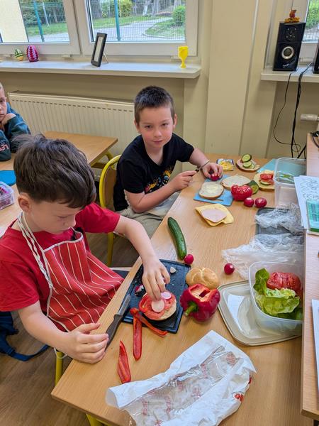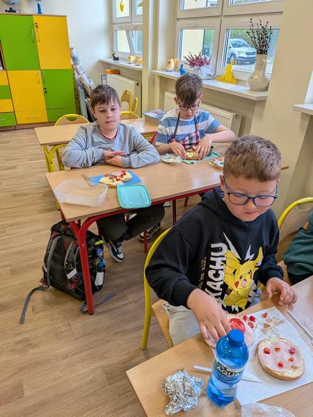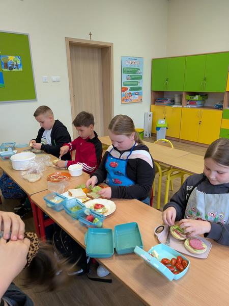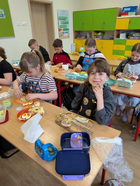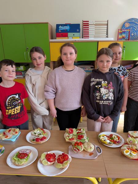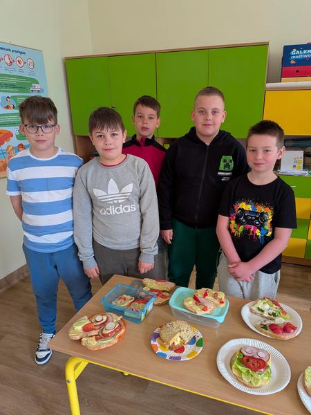 W poniedziałek 20 kwietnia klasa druga wspólnie przygotowała drugie śniadanie. Było wiele warzyw, ciemne pieczywo. W klasie unosił się wspaniały zapach. Po przygotowaniu kanapek odbyła się wspólna degustacja.